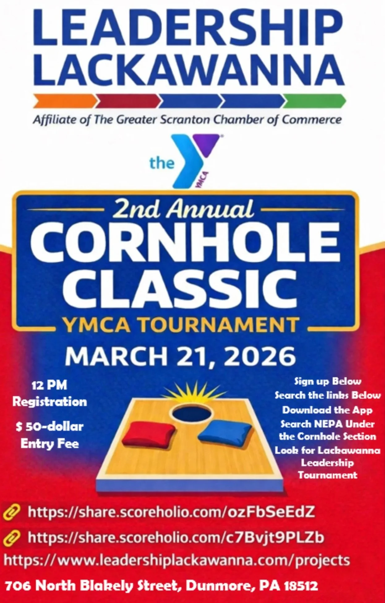 To register - visit scoreholio.com and search cornhole, then Leadership