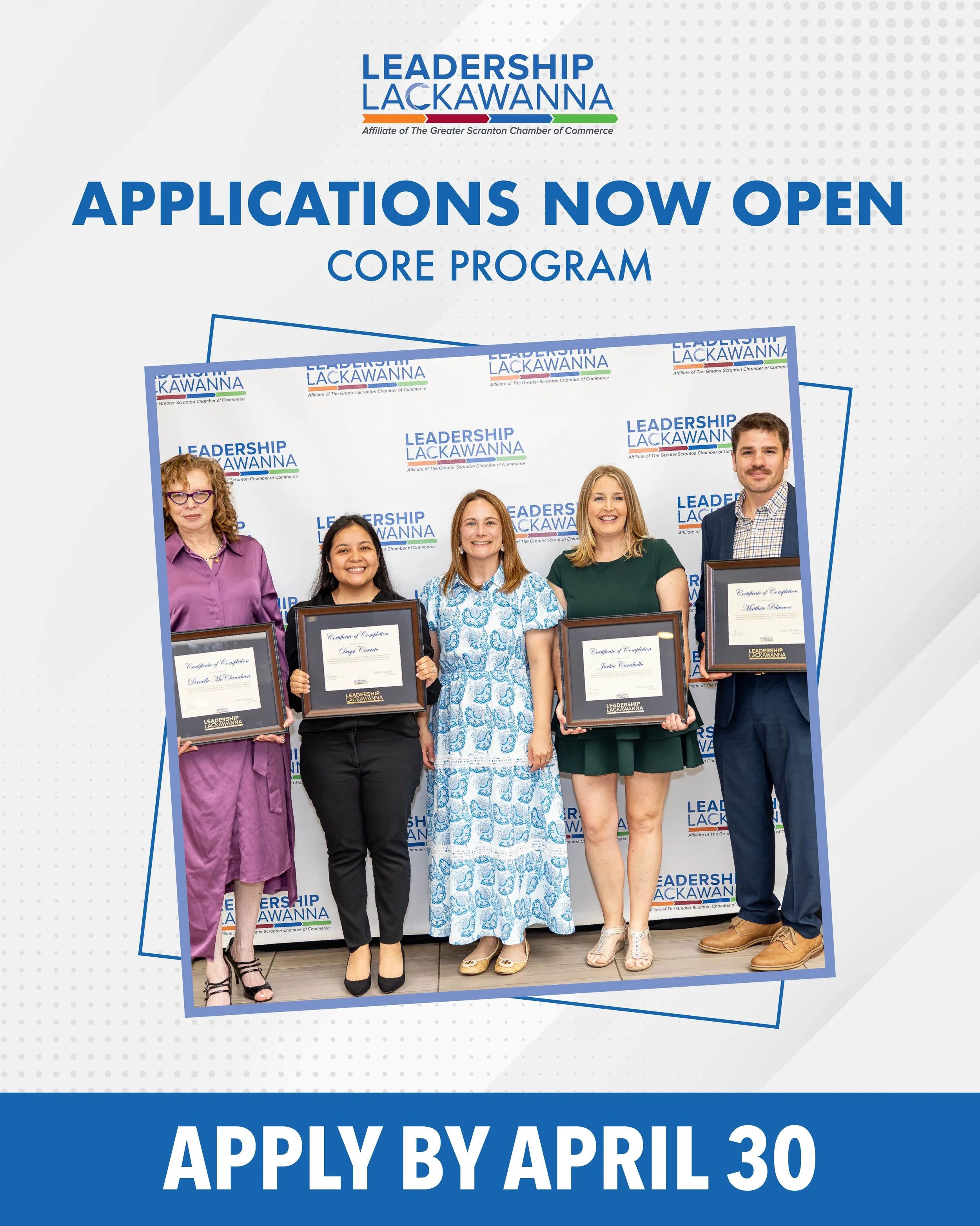 In Leadership Lackawanna’s 10-month Core Program, participants gain leadership, interpersonal and managerial skills, as well as an enhanced understanding of the issues relevant to the Greater Scranton region, through monthly sessions. Areas of focus can include community development, economic development, government, health care, law, education, quality of life, sustainability, history and media, with sessions featuring widely recognized specialists. Members of the class also devote a large portion of their time to develop and implement community projects, hence enhancing their leadership abilities, fostering teamwork and benefiting local nonprofit organizations. Leadership’s Core Program accepts applications from candidates who live or work in Lackawanna County. Partial tuition scholarships are available on a limited basis.