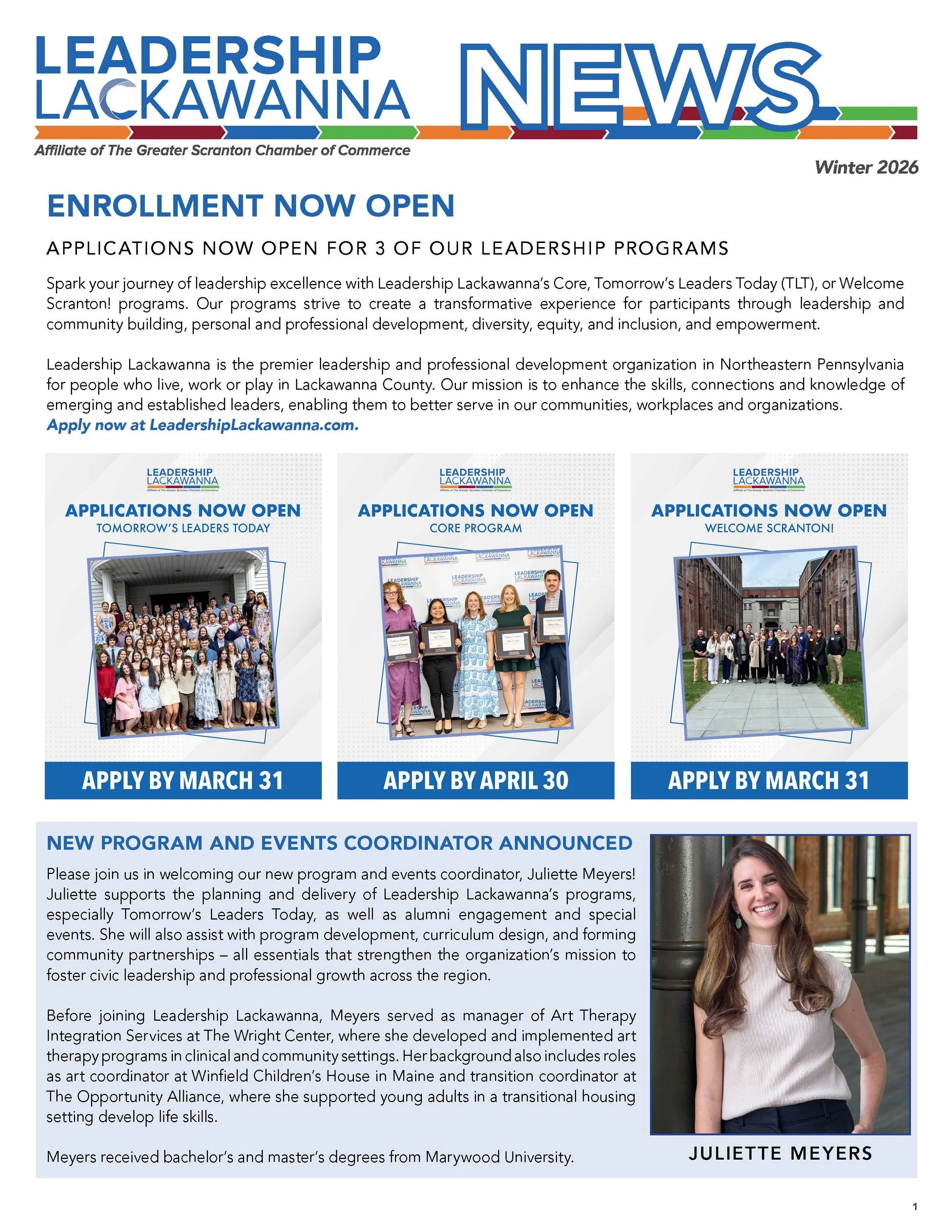 Check out all the great things our organization is up to! Read the 2026 Leadership Lackawanna Winter newsletter today! Click HERE to read all about it!